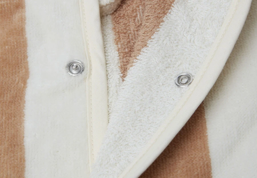 Het badjasje is gemaakt van 100% organisch katoen en is ideaal voor thuis of voor op vakantie. Hij is geschikt voor kindjes vanaf 1 tot ongeveer 2 jaar. De badjas is machinewasbaar op 40°C. Daarnaast kan het badjasje in de droger en mag hij gestreken worden.Â